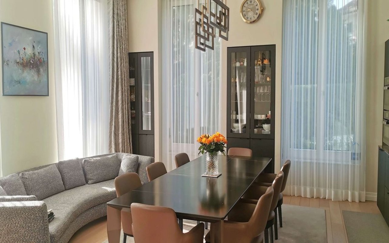Роскошная вилла на берегу озера Диана в Берлине. Квартира на первом этаже с собственным садом – это воплощение эксклюзивности. Панорамные окна, высокие потолки, просторные комнаты и изысканная отделка создают атмосферу роскоши и комфорта. Каждая деталь, от встроенной мебели до системы кондиционирования, подчеркивает высочайшее качество.