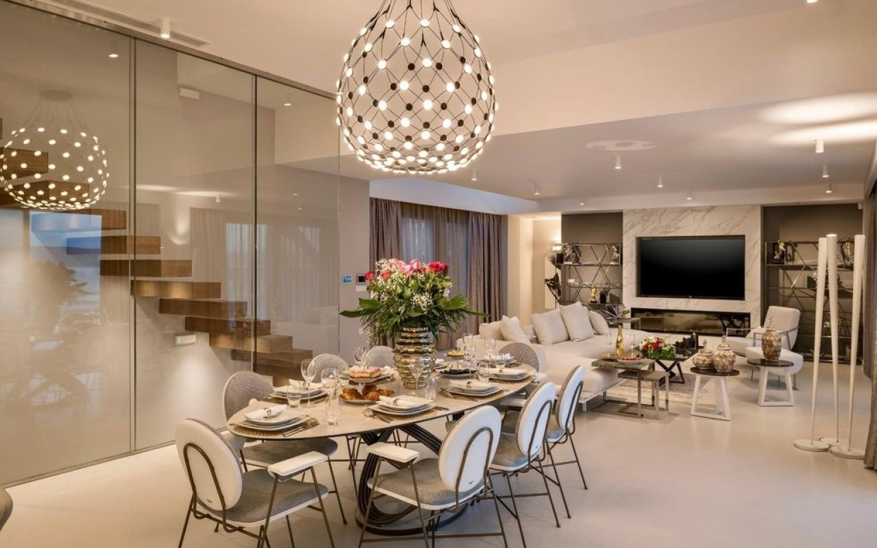 Эта Вилла - само воплощение роскоши и комфорта на берегу моря. Современный дизайн виллы идеально сочетается с панорамными видами на залив Суда. Просторная гостиная, столовая и кухня с открытой планировкой, оформленные в нейтральных тонах, создают атмосферу спокойствия и элегантности. Роскошная спальня на первом этаже и основной люкс со стильной гардеробной на втором этаже обеспечат вам максимальный комфорт. Приватный бассейн с видом на море станет вашим личным оазисом. На нижнем уровне виллы расположен современный фитнес-центр, винный погреб и другие удобства, которые сделают вашу жизнь еще более приятной.