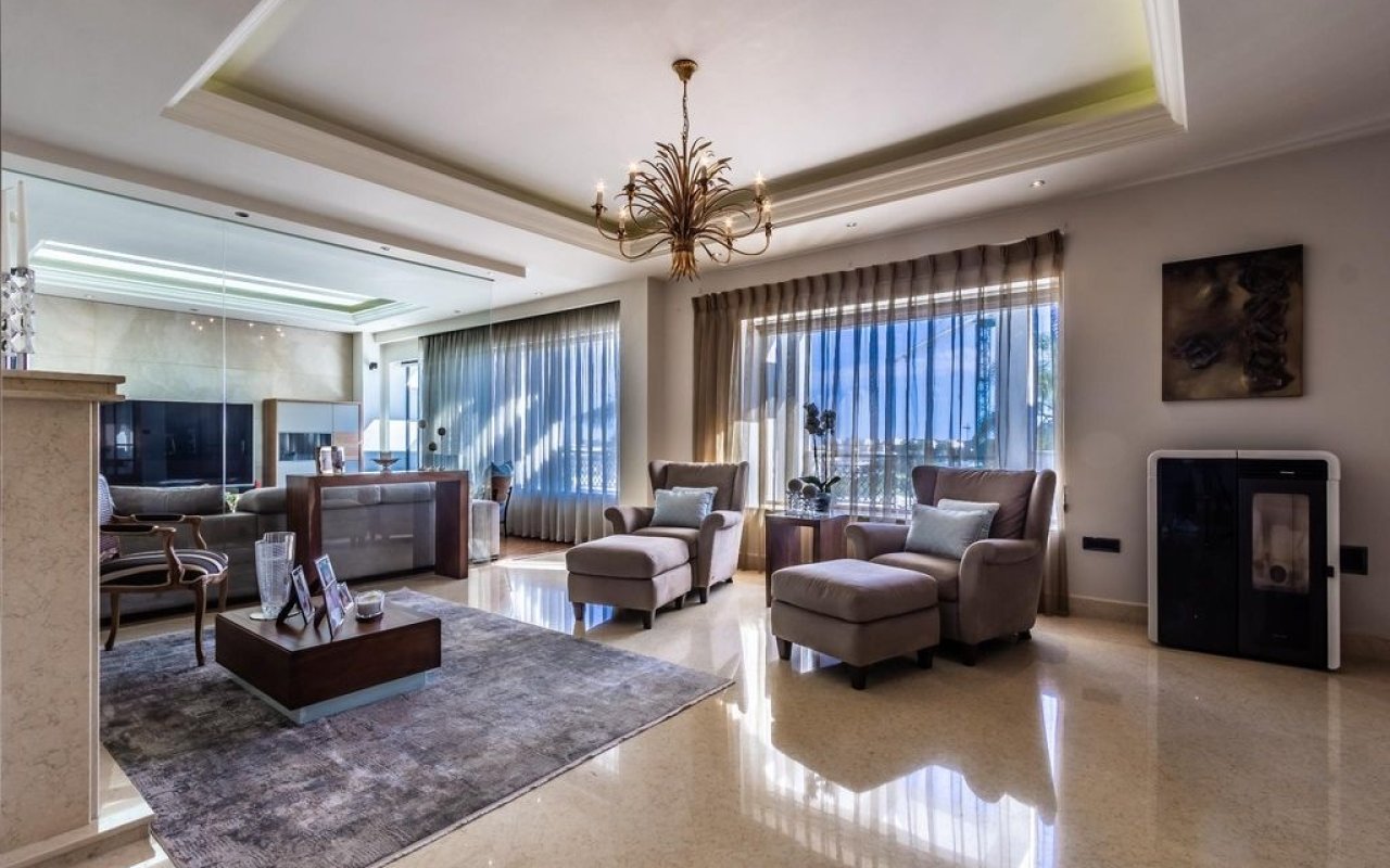 Просторные жилые помещения: Просторная гостиная, современная кухня, несколько спален с ванными комнатами.